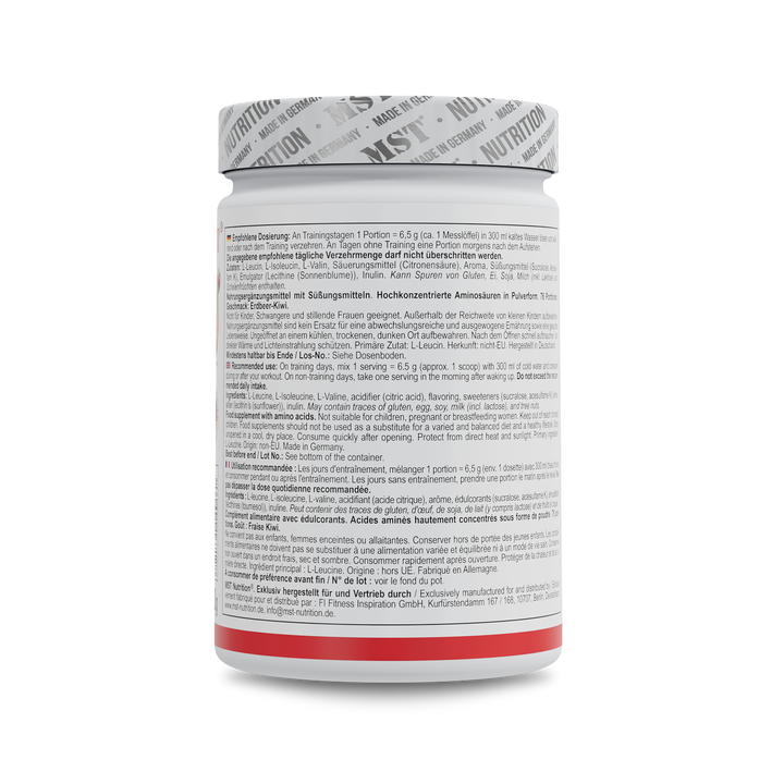 BCAA Zero von MST Nutrition liefert essentielle Aminosäuren im optimalen 2:1:1 Verhältnis aus L-Leucin, L-Isoleucin und L-Valin. Diese verzweigtkettigen Aminosäuren sind wichtige Bausteine von Proteinen, die zum Erhalt und Aufbau von Muskelmasse beitragen können – besonders bei intensiven...