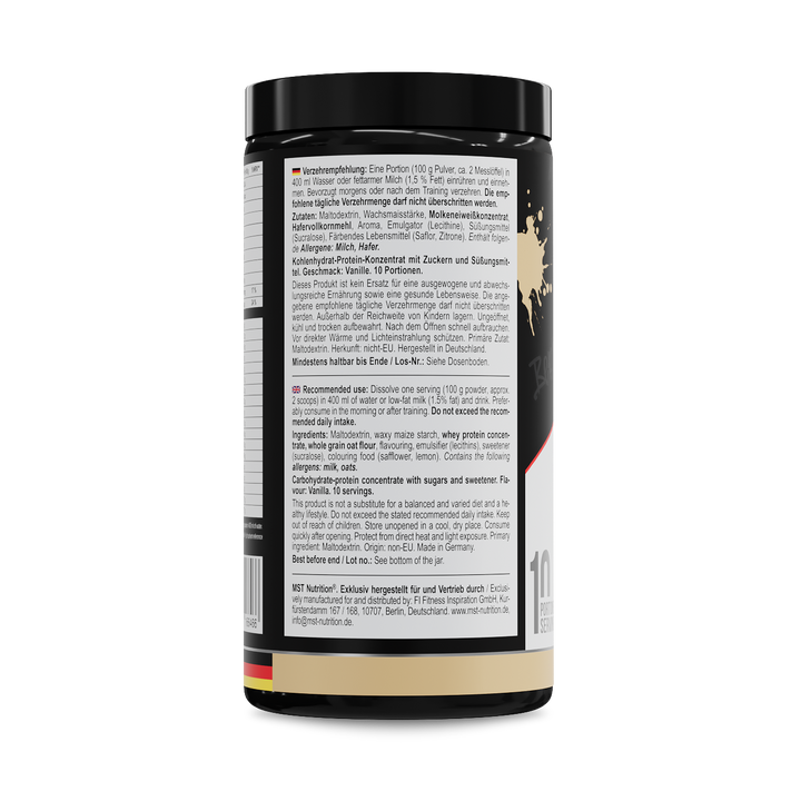 Entdecken Sie den unwiderstehlichen Geschmack und die kraftvolle Unterstützung von MST® Nutrition BEST Mass Gainer Vanilla- eine hochwertige Formel, die entwickelt wurde, um Ihnen dabei zu helfen, Muskelmasse aufzubauen und Ihre Fitnessziele zu erreichen.