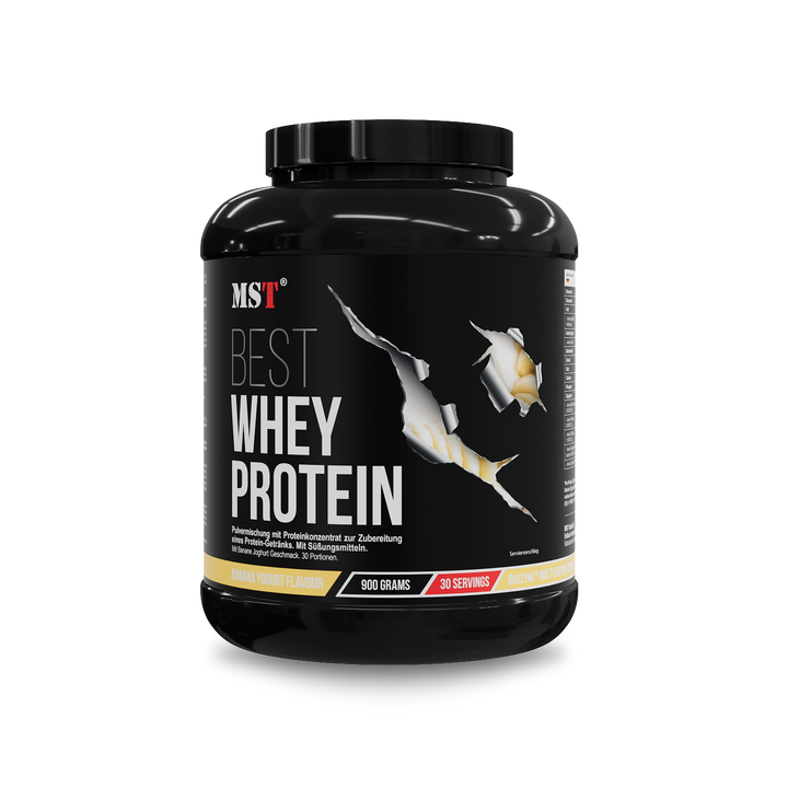 Découvrez l'Expérience Protéinée Ultime avec MST® BEST Whey Protein Banane 900 g, enrichie en DigeZyme® – une combinaison rafraîchissante qui apporte à votre corps des protéines de haute qualité et des enzymes digestives.